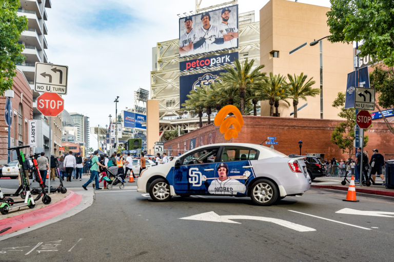 The Padres leveraged SWARM successfully growing their impression numbers quickly. A SWARM is when multiple wrapped vehicles gather at a specific place and time, creating a huge brand moment nobody can forget!